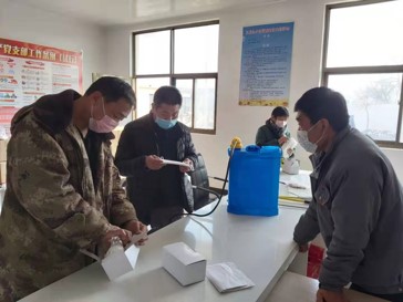 集團(tuán)駐村工作隊(duì)在疫情發(fā)生后,提前結(jié)束假期,主動(dòng)回村配合村黨委開(kāi)展疫情防控工作,幫助村里出思路、提建議,為打勝防疫阻擊戰(zhàn)傾心傾力,和廣大村民一起打贏這場(chǎng)沒(méi)有硝煙的戰(zhàn)役。與此同時(shí)工作隊(duì)還向村防控執(zhí)勤一線人員宣講新型冠型病毒預(yù)防知識(shí)并送去了水、方便面、醫(yī)療外用口罩、復(fù)合季胺鹽消毒噴霧劑、免洗手消毒液等物資,為西同龍村特別是保障一線執(zhí)勤人員自身安全、保證外來(lái)人員病毒不被帶入村等疫情防控工作提供了很有利的幫助。在村里物資困難的情況下,工作隊(duì)向全村貧困戶送去蘋果,以提他們的高免疫力,為了避免人員過(guò)多接觸,工作隊(duì)將蘋果放到貧困戶家門,通過(guò)電話通知貧困戶自取,同時(shí)了解他們近期生活情況,提醒貧困戶要加強(qiáng)鍛煉、注意勤洗手、出門戴口罩等基本防護(hù)措施,提高他們自我防范意識(shí),為今年取得脫貧攻堅(jiān)勝利奠定基礎(chǔ)。